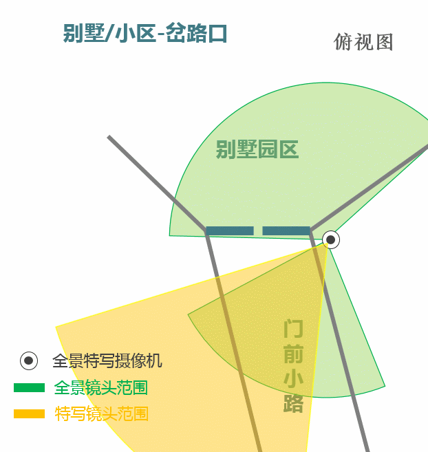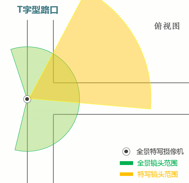 一台全景特写摄像机由三个全景定焦镜头和一个特写镜头组成,三个全景镜头用于监控大场景,特写镜头用于快速捕捉细节。