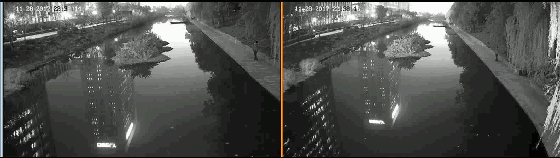 ▲ 其他产品(上)与室外全景特写摄像机(下)在夜晚低照度环境下成像效果对比