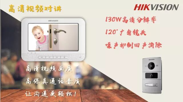 海康可视对讲产品同时通过硬处理和软算法解决对讲中音频处理难题,实现了室内机,门口机之间清晰双工对讲。