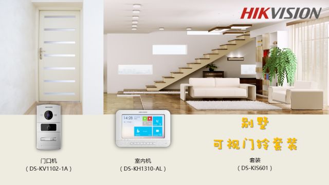 产品型号:DS-KV1102-1A别墅门口机,DS-KH1310-AL别墅室内机,门铃套装 DS-KIS601。