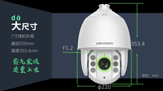 7寸球机尺寸,霸气震慑,质量上乘。
